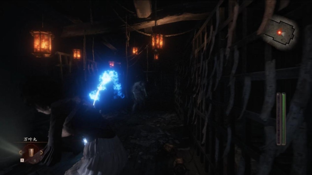 无剧透剧透:《零 ~红蝶~》同时也是个妹妹找姐姐的故事,第一章刚结束,姐姐天仓茧便被村子里的怨灵勾引走了,而妹妹天仓澪只好循着她的踪迹一路狂追。在这个过程中,“灵视”滤镜既不会破坏游戏氛围,又起到了引导的作用,尤其是在本作整体昏暗的环境中,这一功能也保证了玩家能够拥有清晰的游戏目标,不会像个无头苍蝇一样在村子里瞎转。