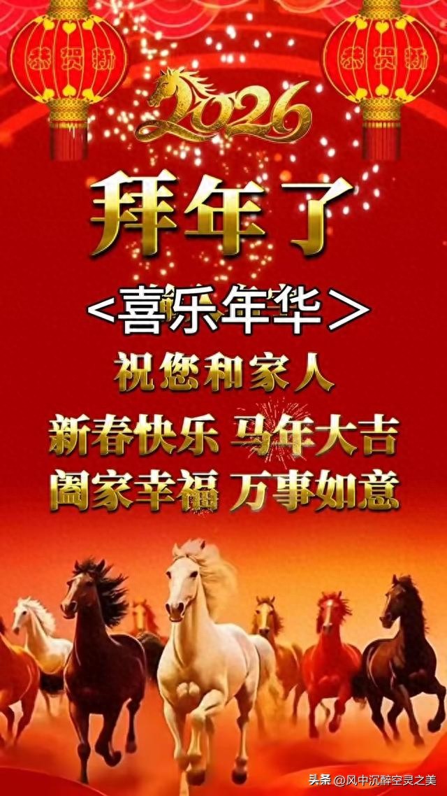 万能金句: 新年快乐、万事如意、恭喜发财、阖家幸福。