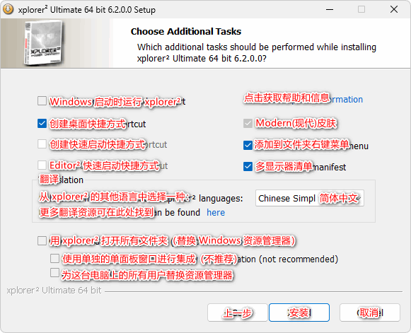 安装时记得勾选你需要的语言,比如简体中文请勾选:Chinese Simpl  (截图预览图一)。
