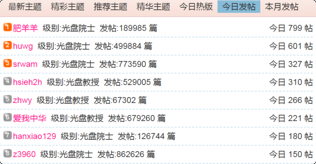 (1)每日发帖在100以上的: