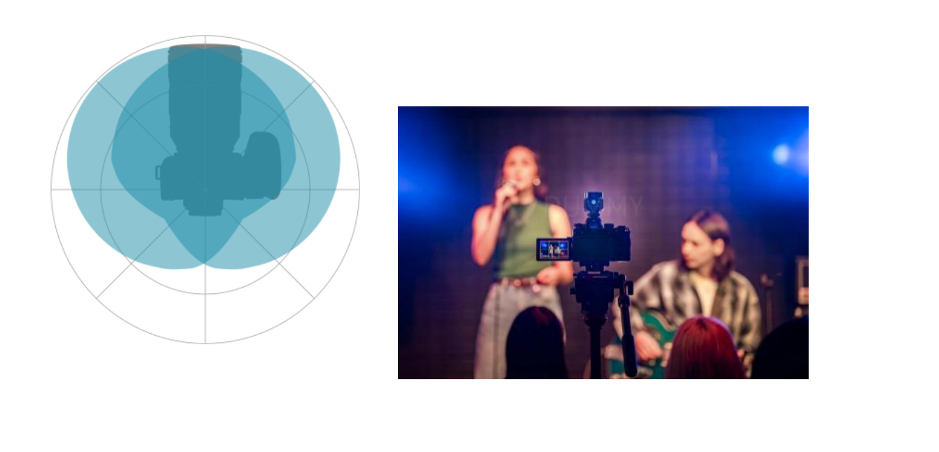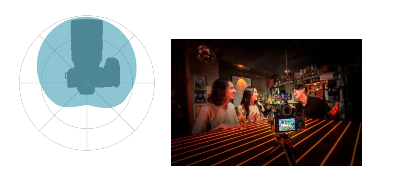 清晰捕捉前后方声音,同时抑制侧面声音。推荐用于摄像师与拍摄对象互动等场景的采访录音。