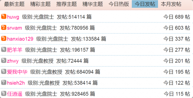 (1)每日发帖在100以上的: