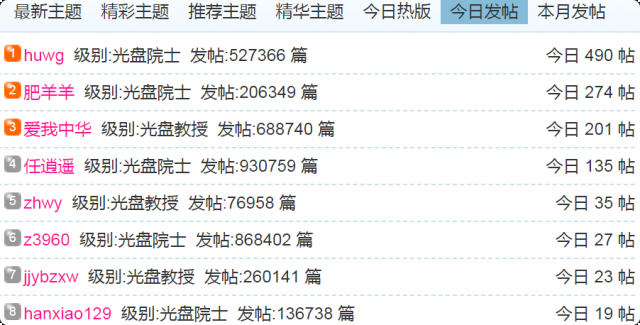 (1)每日发帖在100以上的: