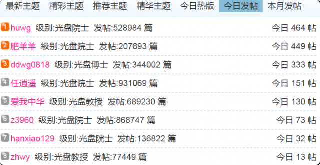 (1)每日发帖在100以上的: