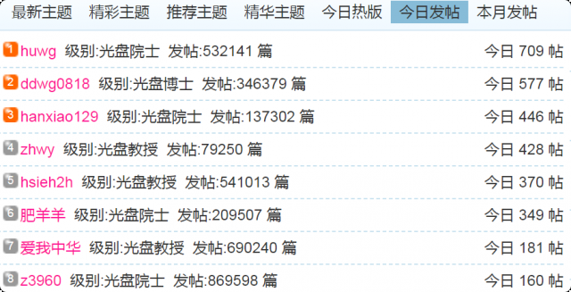 (1)每日发帖在100以上的: