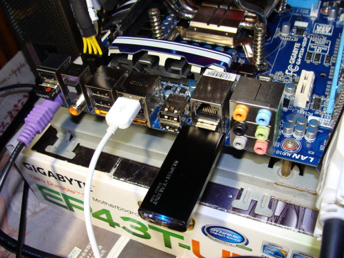 接下来我们进行USB3.0速度测试,将SUPER TALENT USB3.0 16G U盘插入蓝色USB3.0接口。