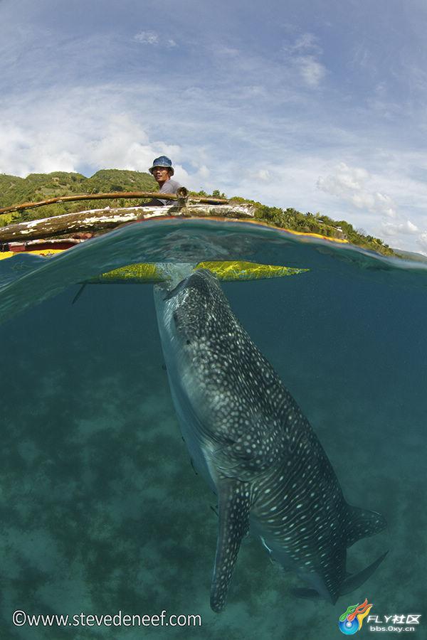 渔民与鲸鲨 当地渔民经常喂鲸鲨来吸引游客 增加收入 同时减少对当地鱼类的捕捞 但长期对鲸鲨进行人工喂养是否正确 这是个问题 作者 steve de neef