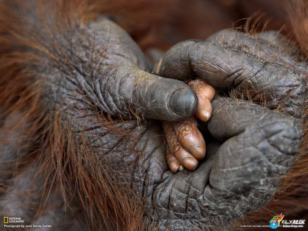 婆罗洲(Borneo)丹绒普汀国家公园(Tanjung Puting National Park)里,猩猩妈妈和猩猩宝宝间流露出的温情时刻。该树栖物种的生育间隔期是哺乳动物中最长的生育间隔期之一,通常为八年左右。