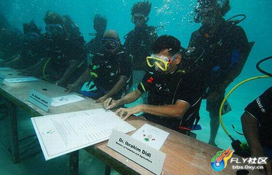 为了引起人们对这一问题的关注,马尔代夫内阁会议最近在水下举行。