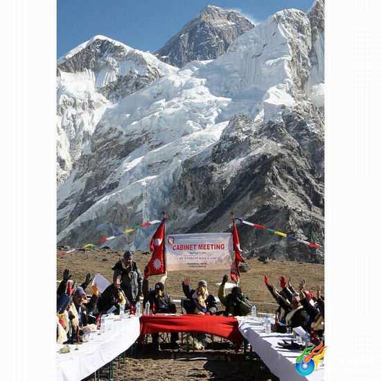 在哥本哈根峰会之前,尼泊尔政府内阁在珠穆朗玛峰下召开会议,以引起世界对其问题的关注。