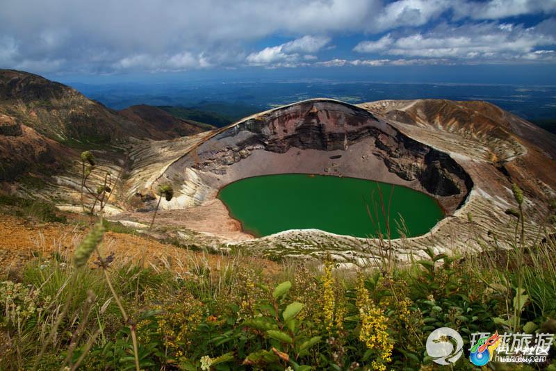 Zao火山位于日本的山形县和宫城县边界,有一系列成层火山构成。Okama火山湖也叫“五色塘”,因为湖水的颜色会随着天气而变化。湖泊直径360米,深60米,是本州主要的旅游景点之一。
