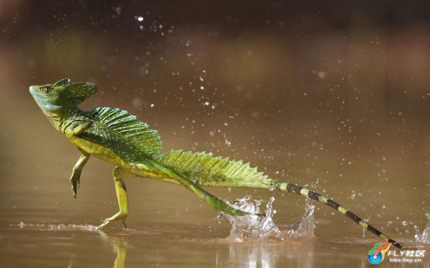 哥斯达黎加桑塔里塔,一只双嵴冠蜥在水面上奔跑。