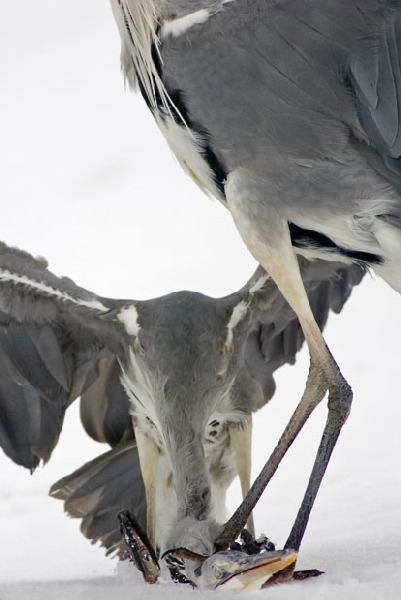 匈牙利克斯甘萨格国家公园克萨基湖,一只苍鹭站在另一只苍鹭的脖子上。