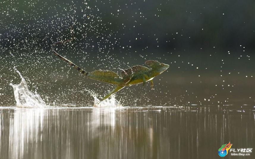 哥斯达黎加桑塔里塔,一只双嵴冠蜥在水面上奔跑。马特现年27岁,他表示,要想近距捕捉动物动态图片,实现需要做好详细计划,并且在等待的过程中要非常耐心,有时候为了拍摄一个场景,可能要等上好几天,甚至是好几个月。
