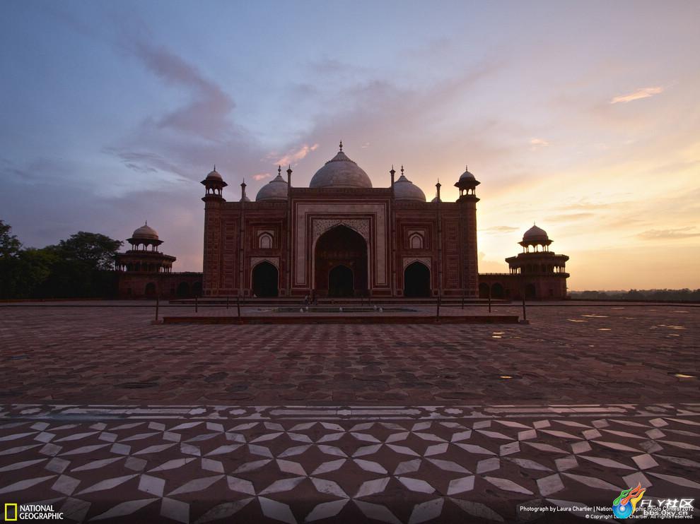 日落余晖下宁静的泰姬陵