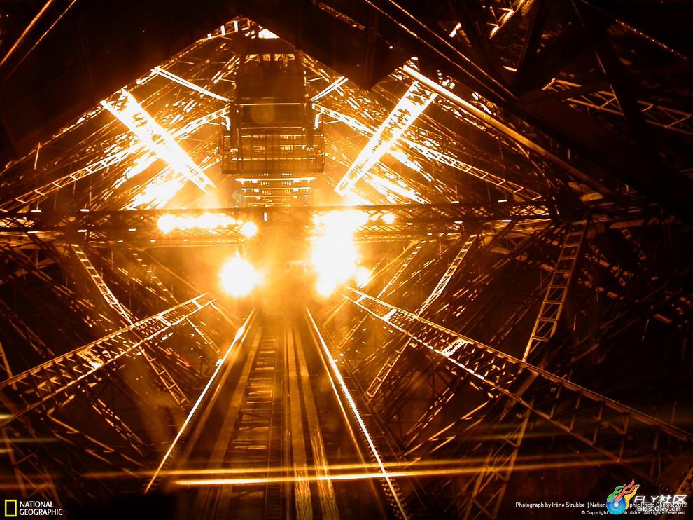 在艾菲尔铁塔的电梯里