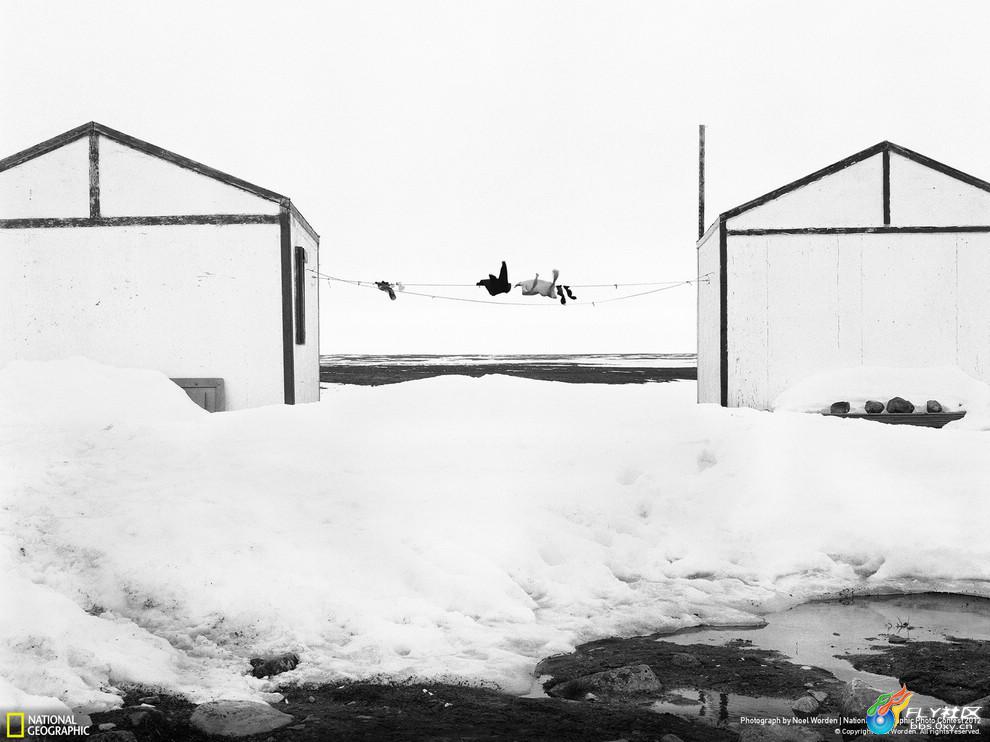狂风的舞蹈,冰天雪地,晾着的湿衣服在寒瑟的北风中狂飞乱舞等着烘干。
