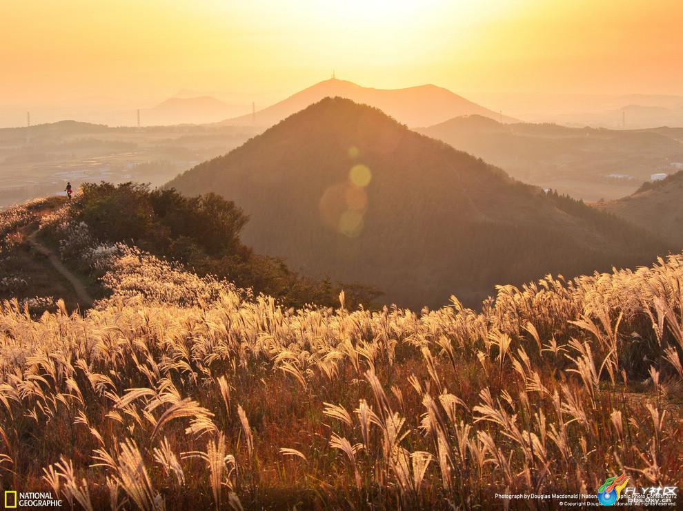 韩国的黄金山横跨济州岛,山上有400多处由火山寄生锥构成的景观。远足在当地非常流行,你能拍摄到很多难以置信的日落景象。一个秋日下午,我决定去爬岛屿西侧的新星岳岛。这里的气候变换莫测,但是今天的我是幸运的。当我到达山顶的时候,暖暖的夕阳以合适的角度照耀着山头,使我面前的一片芦苇地沐浴在这温暖的余晖之中。
