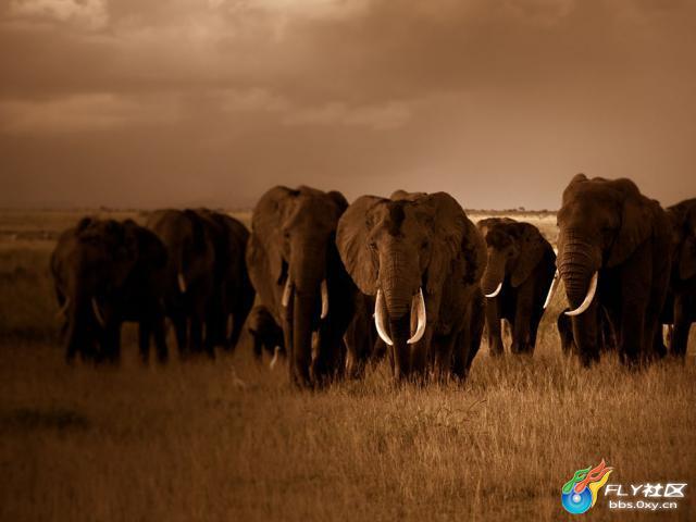 肯尼亚安博塞利国家公园的一群大象。此时,一场雷暴正处在进行时。