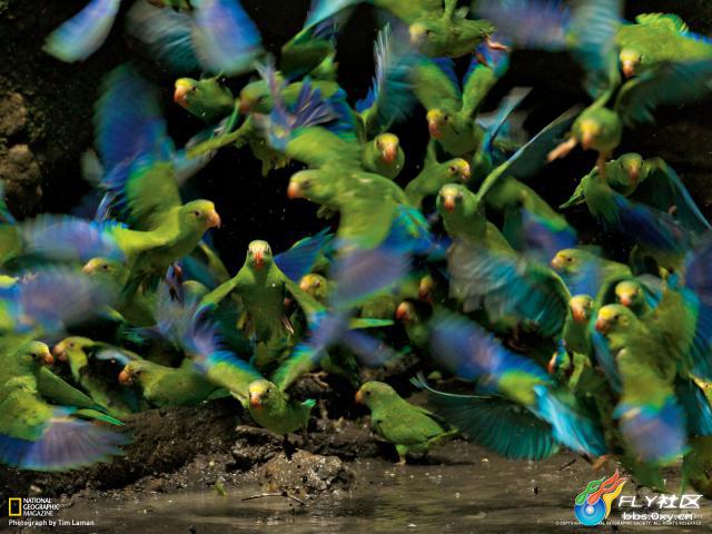 厄瓜多尔的亚苏尼国家公园,一群绣眼蓝翅鹦鹉在池塘上方飞舞,绚丽的色彩给人留下深刻印象。在这座国家公园,科学家发现了近600多种鸟类。