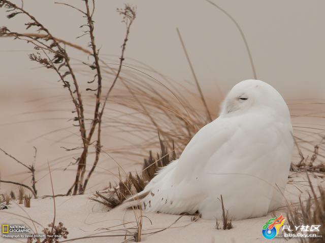 纽约长岛琼斯海滩的一只雪枭,雪白的外衣与周围环境融为一体。这一栖息地一年四季都生活着大量猛禽,吸引着无数摄影师和鸟类爱好者,其中尤以雪枭最受追捧。