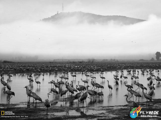 以色列的胡拉湖,无数鸟聚集在一起,景象非常壮观。