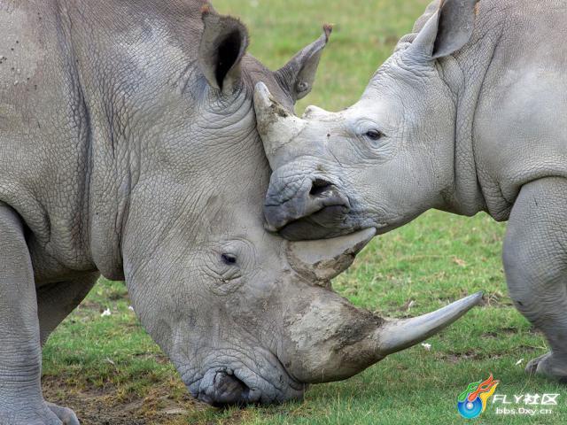 肯尼亚纳库鲁湖国家公园的一对犀牛亲密接触。