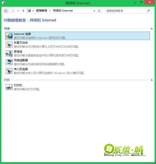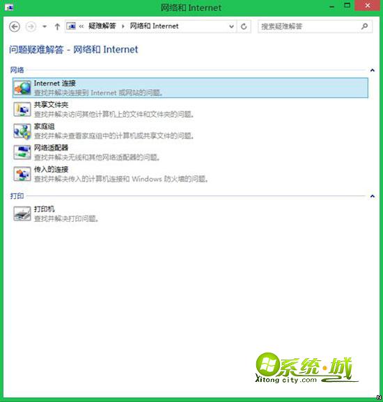 Win8.1系统有内置了问题疑难解答功能,依次进入控制面板/所有控制面板项/疑难解答/网络和Internet,选择第一项“Internet连接”进行分析诊断,