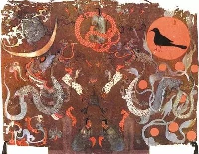 △马王堆汉墓中绘制的月亮(左)和太阳(右)