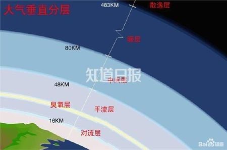 在其上面是平流层,也就是会阻挡太阳射线中最危险的紫外线,臭氧层的所在位置。