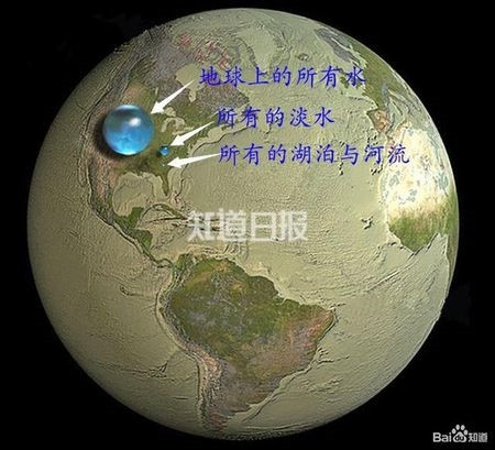 如今,地球表面的水占了71%,陆地占了29%。97.5%是咸水,而只有2.5%是淡水。淡水的69%是冰和雪,30%是地下水,只有约剩下的1%是地表的水。