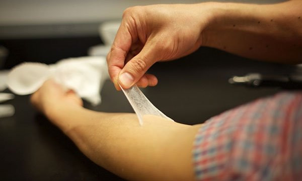 “制造一种跟皮肤一样的材料,这非常难。”这项新研究的共同作者之一、麻省总医院的皮肤科医师芭芭拉?吉克瑞斯特(Barbara Gilchrest)评论道,“很多人做了尝试,可是在这种材料发明之前,还没有哪一种材料能做到既柔韧又舒适,没有刺激性,还可以贴合皮肤的运动并回复原先的形状。”