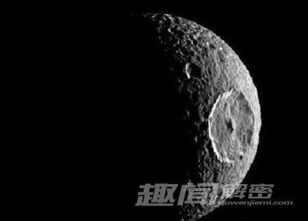 土卫一“米马斯”是土星众多卫星中的一个,表面坑坑洼洼。