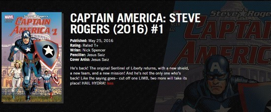 在漫威漫画官网的故事简介中写着“他又回来了!这位自由守卫者带着全新的盾牌、全新的团队以及全新的任务回来了!不过他不是独自归来!就像那句话说的‘砍下一个头,原处长出两个!九头蛇万岁!”