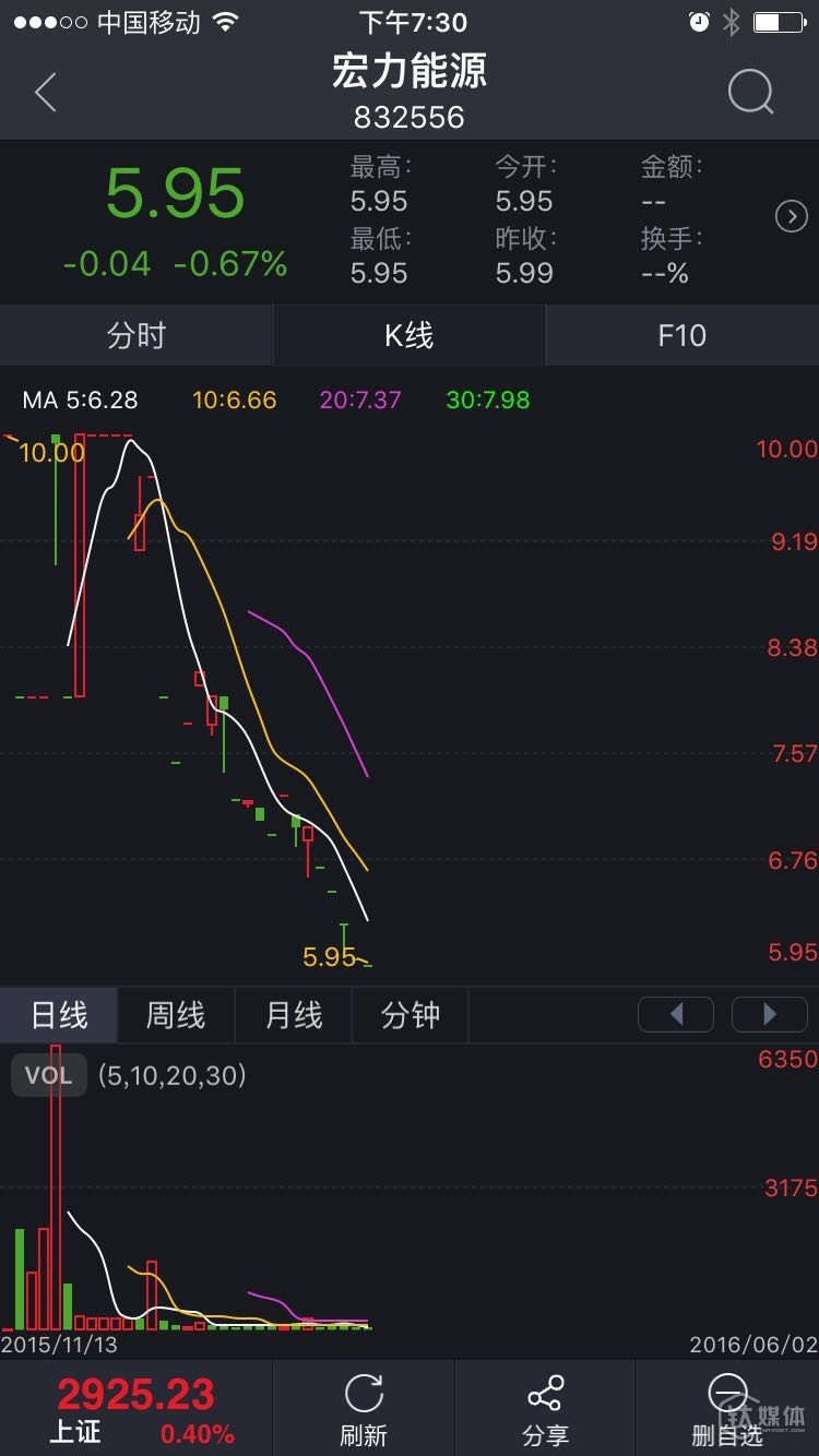 三位投资人的买入价是10元钱一股。财报出来后宏力能源在新三板上的股价一路下挫。张浩回忆,“在7快多的时候,我们就很不理解了,我们10元的定增价,现在做市后只有7块多的价格,我们直接在新三板上买就行了,为什么还要走定增呢?” 现在宏力能源股价在5块多。