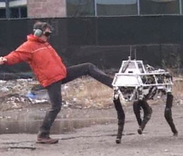Schaft公司开发的这款拥有良好平衡性的机器人让人想起谷歌旗下的另一家机器人公司波士顿动力,该公司近期内开发的一些产品同样开始具备很好的平衡性,比如图中展示的“大狗”机器人,工作人员试图踹倒它,但“大狗”仍然能够保持住自己的平衡状态。