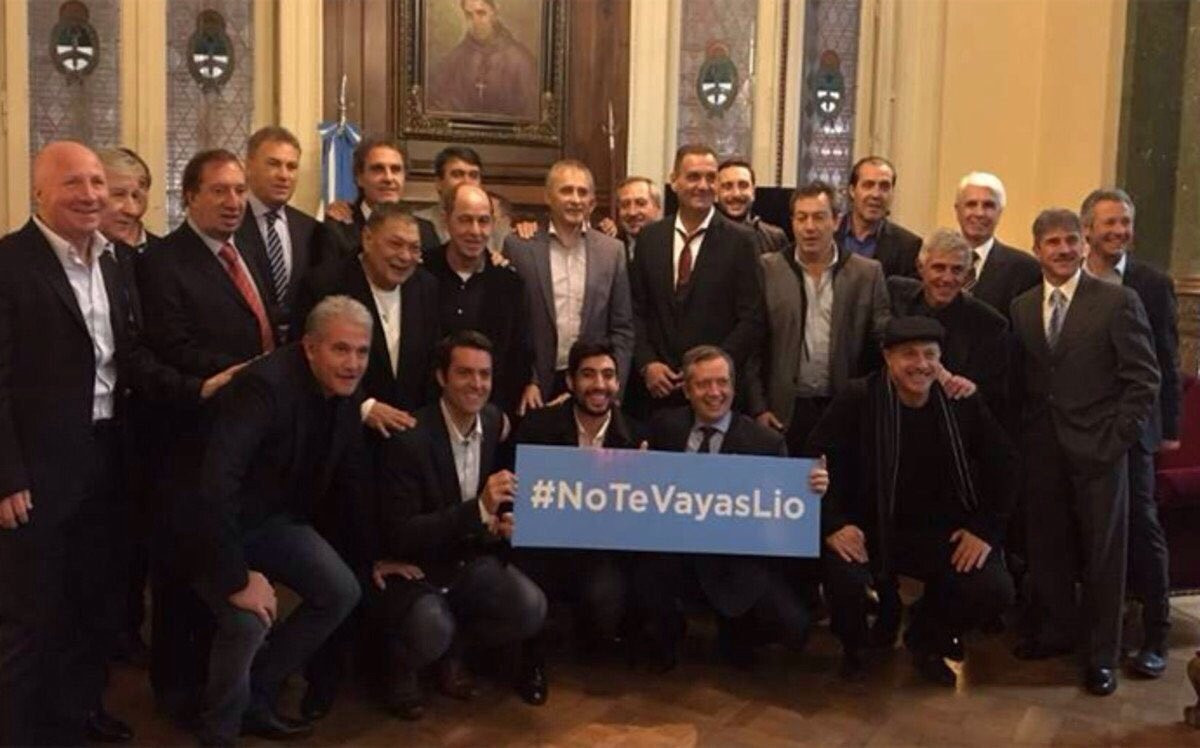 阿根廷86年世界杯冠军队,手中拿着“里奥别走”的横幅