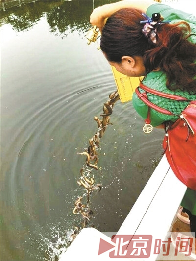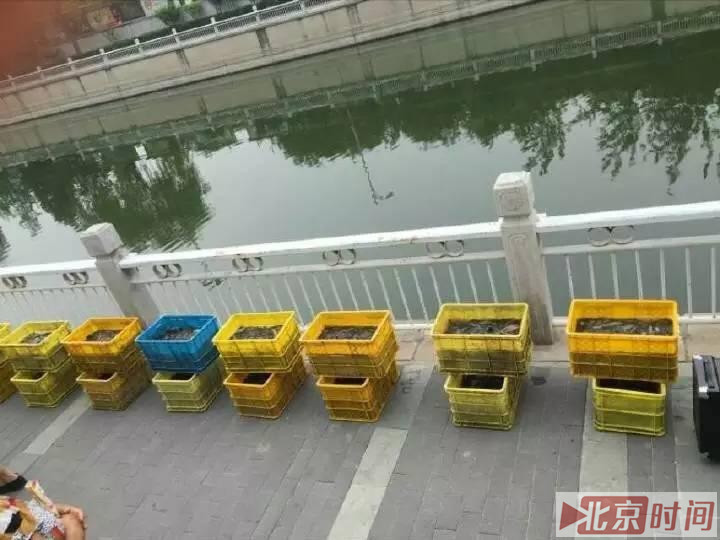 但7月3日上午,南二环护城河附近,仍有团体组织放生活动,一群人将十多箱子泥鳅、鲫鱼倾倒进河中,更在现场向路人出售放生用鱼,泥鳅80元一条,鲫鱼50元一条。家住右安门附近的吴先生介绍,“这几年来,每到端午节前后就有人来护城河放生。每年都是六七月人最多。去年有人一次性放生了好多鱼,结果没过一周,这河上就飘起死鱼,一条条翻着白肚皮,特别臭。”