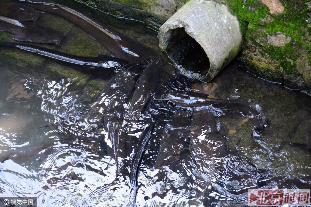 2016年6月7日,福建省厦门市,南普陀寺的放生池里的鲶鱼。许多信众不听劝阻,经常偷偷摸摸将一些乌龟、鲶鱼、革胡子鲶、巴西龟、鳄鱼等放生到池子里。其中巴西龟是外来物种,它们适应性强,对当地的物种会带来较大影响,甚至可能导致本土龟消亡,严重破坏生态平衡。