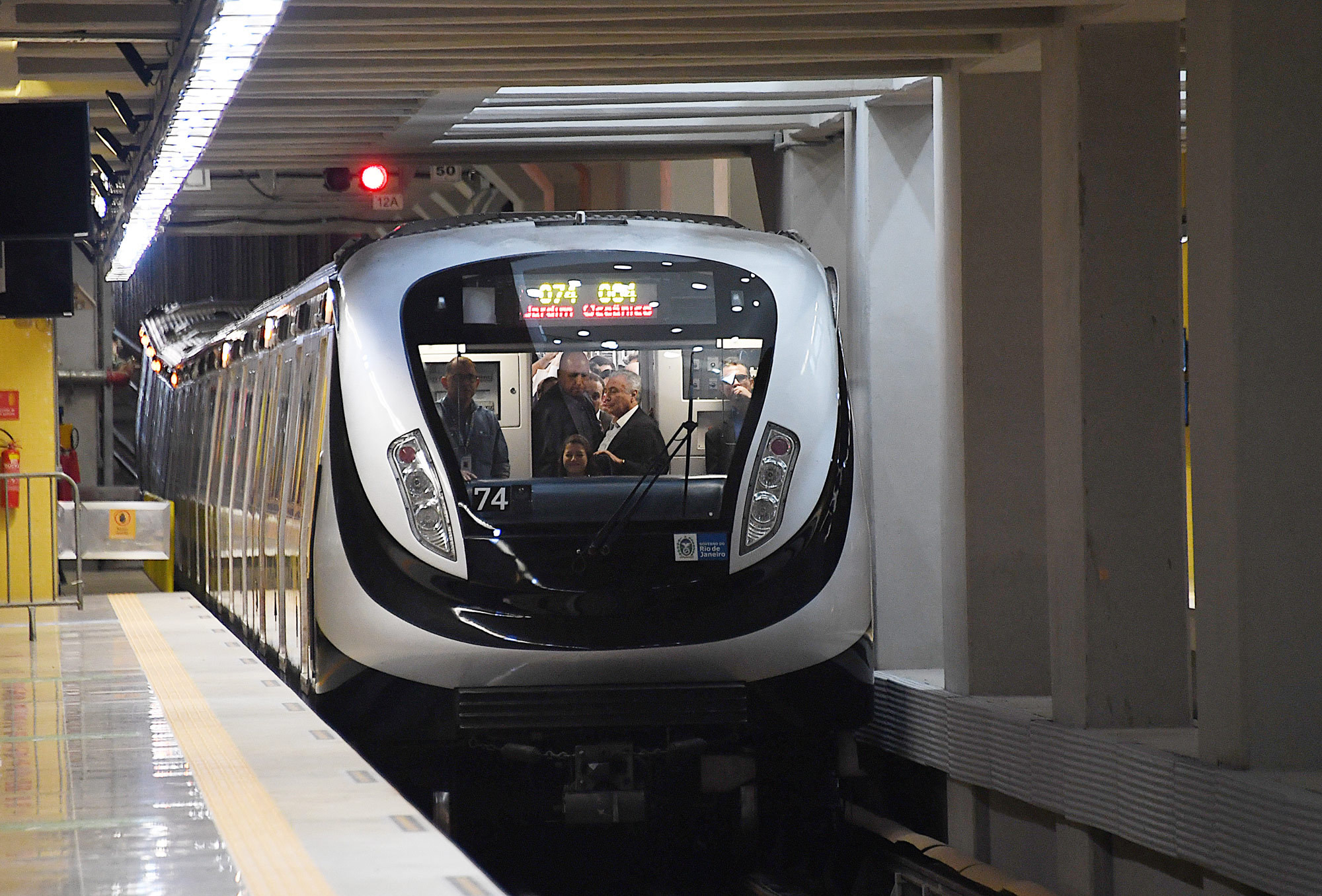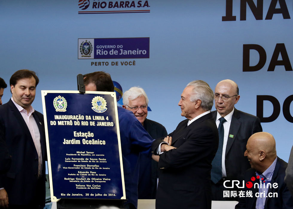 7月30日,巴西代总统特梅尔体验里约地铁4号线。