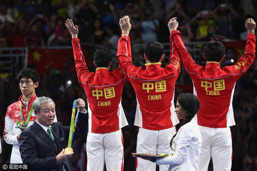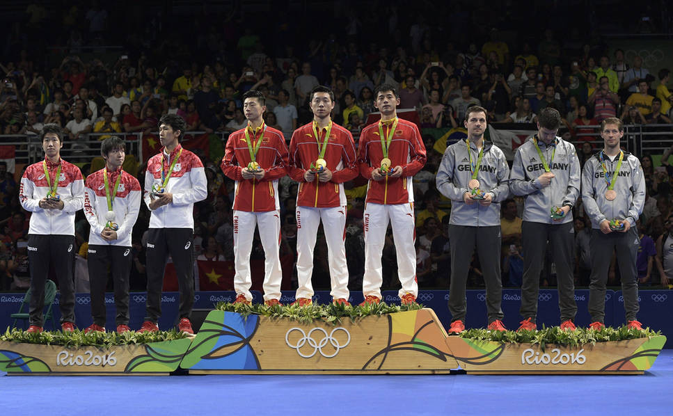 北京时间8月18日,里约奥运会乒乓球男团决赛在中日之间展开,中国男队经过4盘苦战,3-1战胜日本,成功卫冕,也实现男团三连冠。至此中国队成功包揽本次奥运会男单(马龙)、女单(丁宁)以及男女团体四枚金牌。这是中国乒乓球队继1996年亚特兰大奥运会、2000年悉尼奥运会、2008年北京奥运会以及2012年伦敦奥运会后,历史第五度在单届奥运会上包揽乒乓球项目的四块金牌。