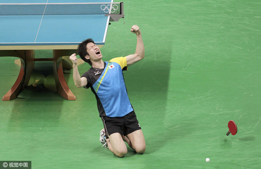 男乒团体赛许昕丢1分 水谷隼扔拍跪地庆祝