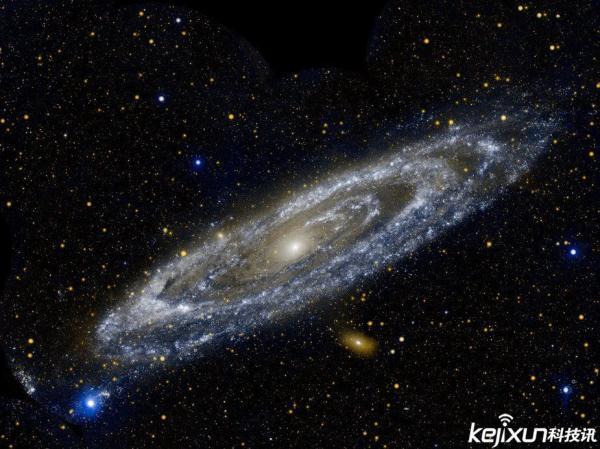 仙女座星系距离地球约250万光年,以天体概念而言,是银河系的“近邻”。这个巨大星系跨度约有26万光年。这张由星系演化探测器(GALEX)卫星拍摄的11张不同图像合成的紫外线图片,展示了这个美丽的漩涡星系。