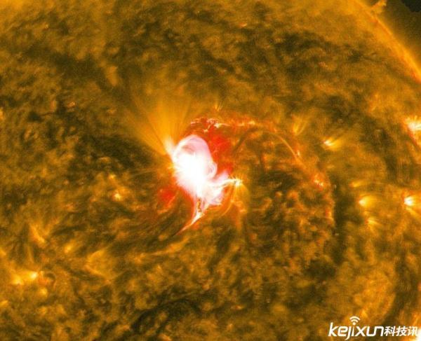 美国宇航局(NASA)太阳动力学天文台的科学家对太阳进行持续观测,捕捉到了一次太阳中级耀斑的爆发。