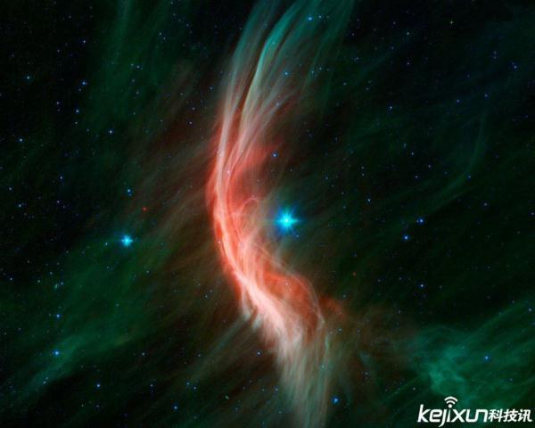 美国宇航局(NASA)发布了一张由斯皮策太空望远镜拍摄的蛇夫座ζ星(Zeta Ophiuchi)图片。这颗逃逸星球以每秒24公里的速度在太空中“疾驰”,仿佛一艘行经宇宙之海的船只,推动涟漪荡漾。