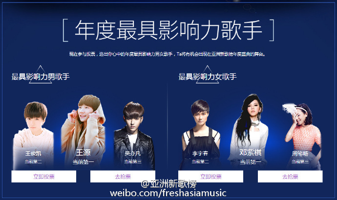 作为歌迷,我们急切地盼望这些当红小生中快速地涌现出一两个引领歌坛的巨星偶像,我们能做的是在微博上、演唱会及各种周边关注他们支持他们,在他们用实力厮杀的过程中见证全民偶像的诞生。