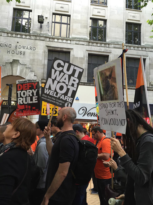 人们的诉求多种多样,抗议脱欧、反对重开文法学校、主张教育公平、反对对外军事干预,抗议脱欧后日益严重的仇恨犯罪,种族歧视等等。 在保守党政府持续6年的紧缩政策下,种种内政顽疾依然被民众诟病。