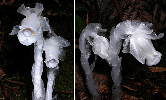 【陕西现冥界之花 称具有灵异力量可杀人于无形】最近,周至殿镇田峪景区发现了一种独特的植物,株高十多厘米,一簇一簇地生长,浑身晶莹剔透,非常罕见!它就是水晶兰,也有着“幽灵草”“梦兰花”等名。在武侠小说里,它常常被神化成具有起死回生功效的仙草,或被视为具有灵异力量可杀人于无形的邪恶化身,甚至于它的幽香也能让人闻之色变。在传说中它也是冥界的花,是邪恶和神秘的象征,因此也得名“死亡之花”。