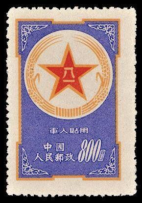 据了解,1953年由邮电部负责设计发行一套军人贴用邮票,这套邮票共3枚,面值800元(旧币),底色分别用橘黄、紫色、蓝色来表示陆、空、海三军,被集邮界简称为“黄军邮”、“紫军邮”、“蓝军邮”。由于种种原因,“军人贴用”邮票发行使用很短的时间后,因发现使用范围难以控制,故停用并销毁,而“蓝军邮”未及下发即被销毁,因此存量极少,公开显示的仅有8枚。据业内人士透露,目前单枚“蓝军邮”邮票的价格在300万元左右。