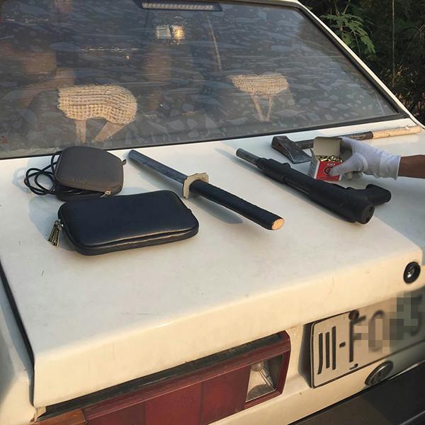 控制住驾驶员后,交警在其车内发现了1把匕首、1把斧头,1把改装射钉枪和100余发子弹。